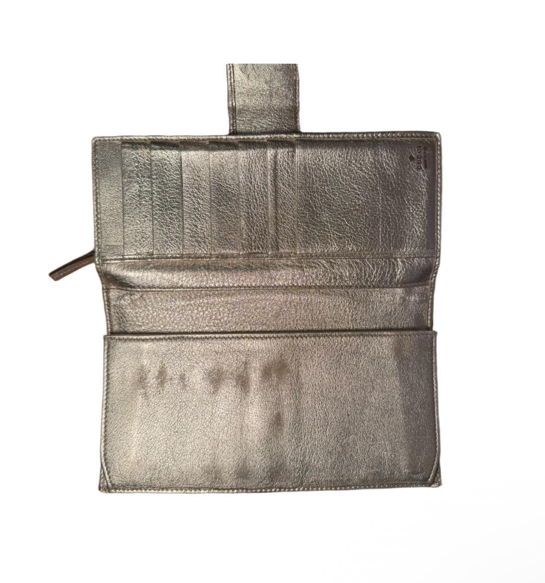 Gucci Wallet Womens Beige Metallic Gold Continental GG Canvas