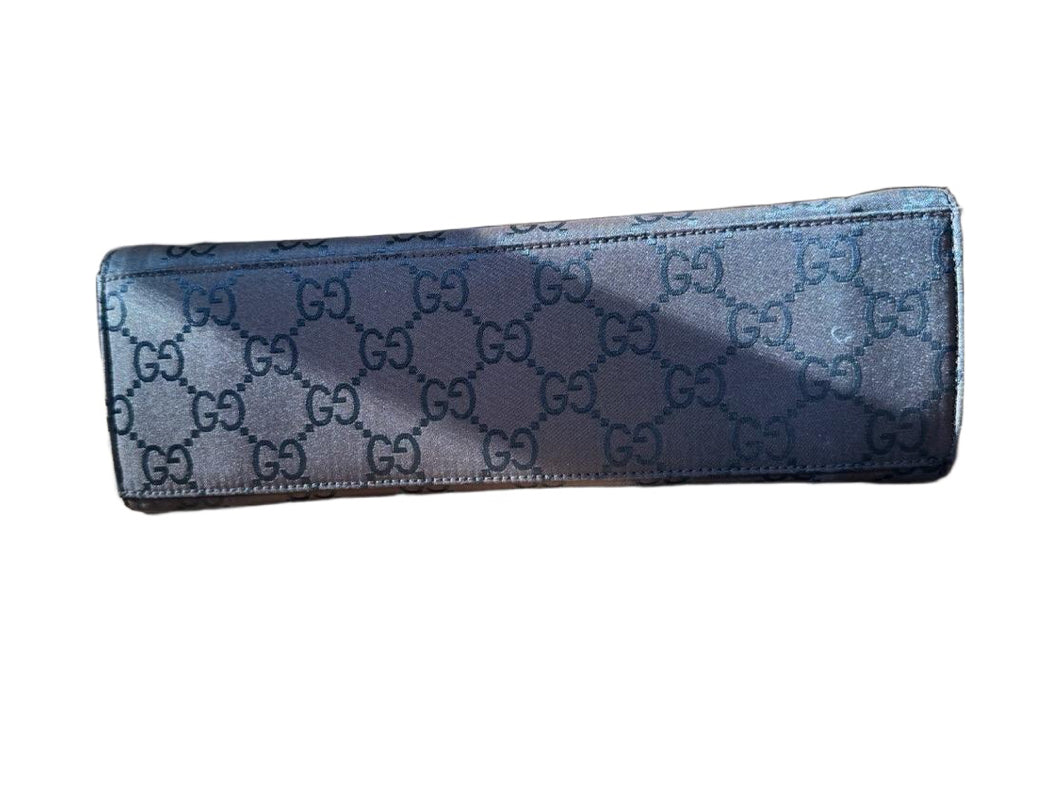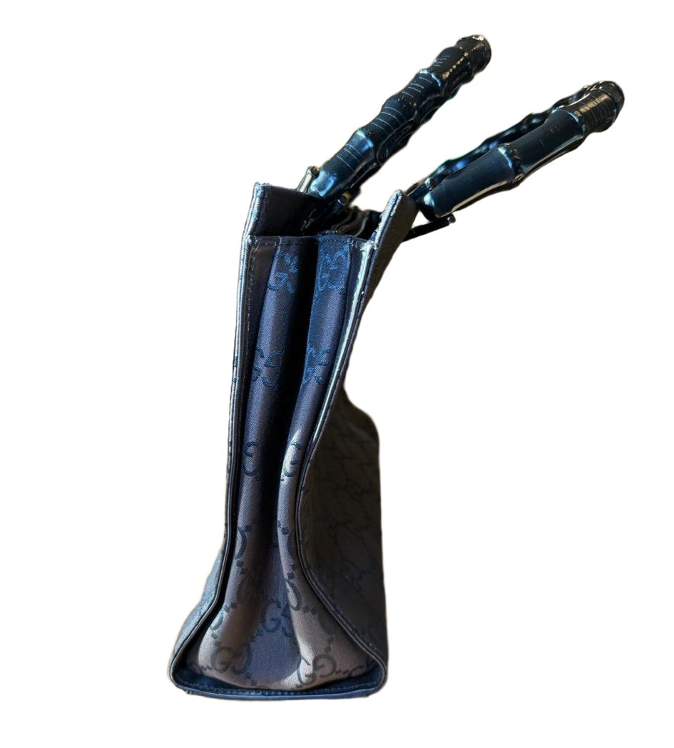 Gucci Womens Brown and Black GG Canvas Bamboo Top Handle Tote Monogram Luxury