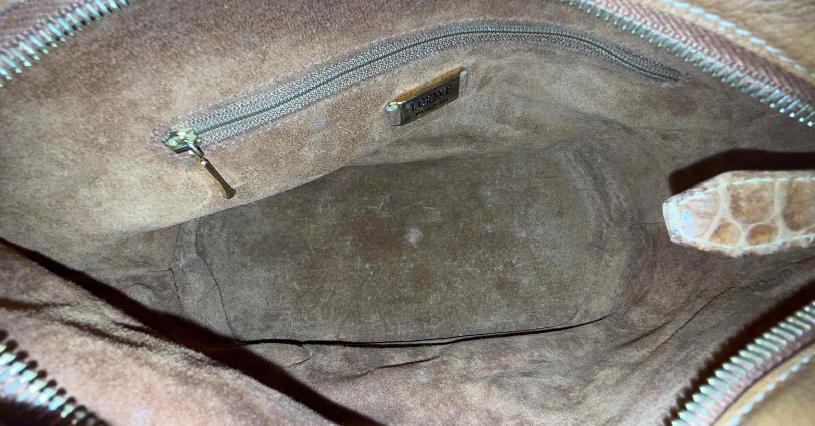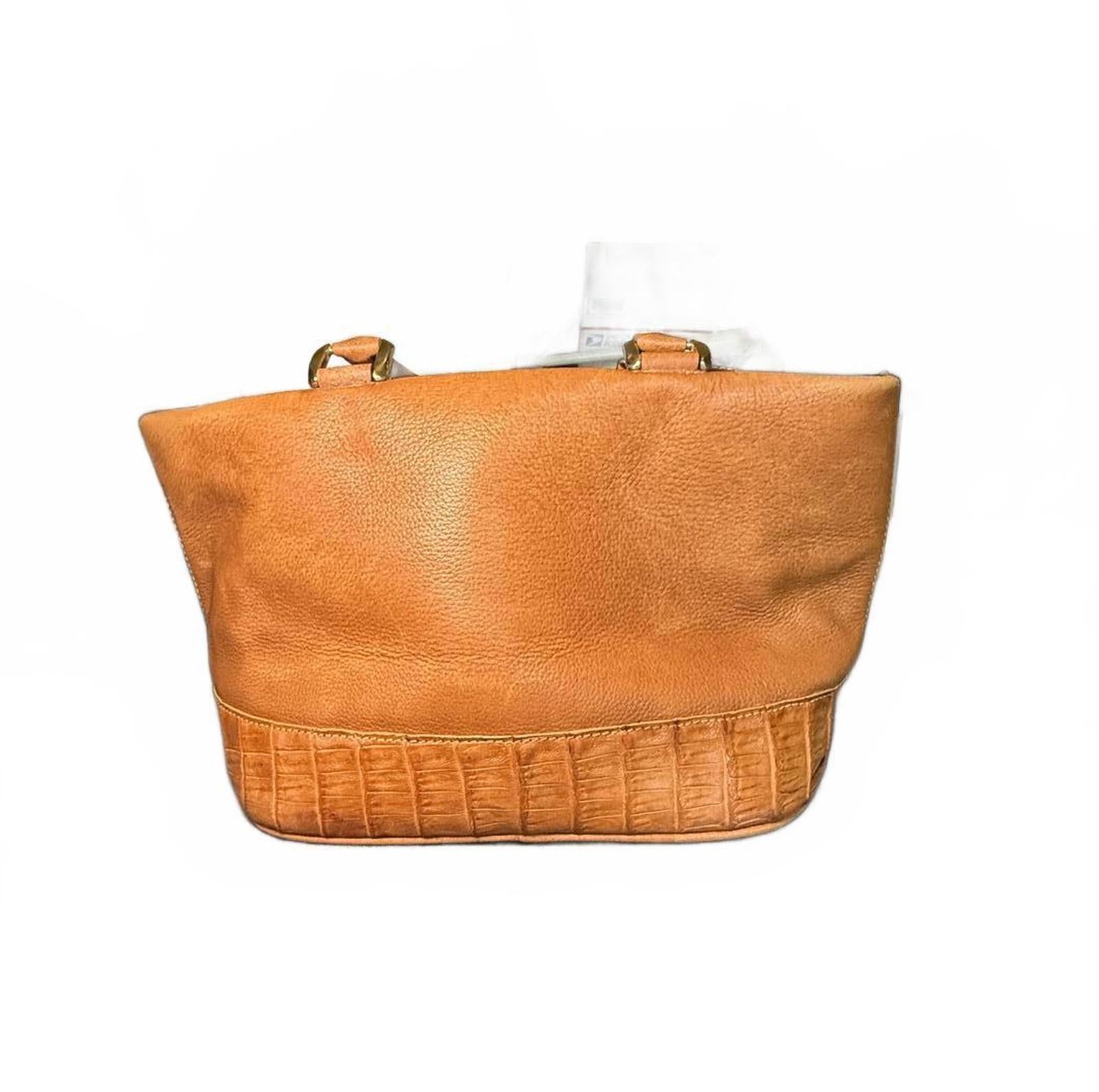 Loewe Tan Leather Handbag Bag with Crocodile Texture Accent