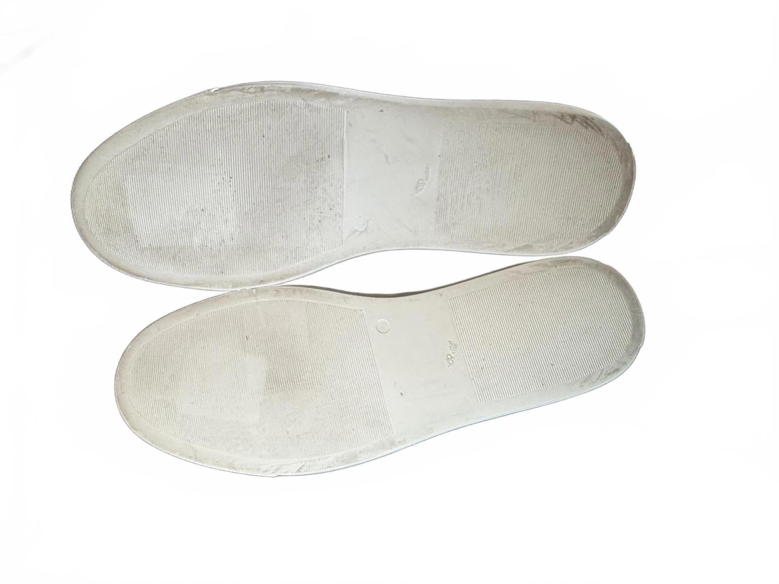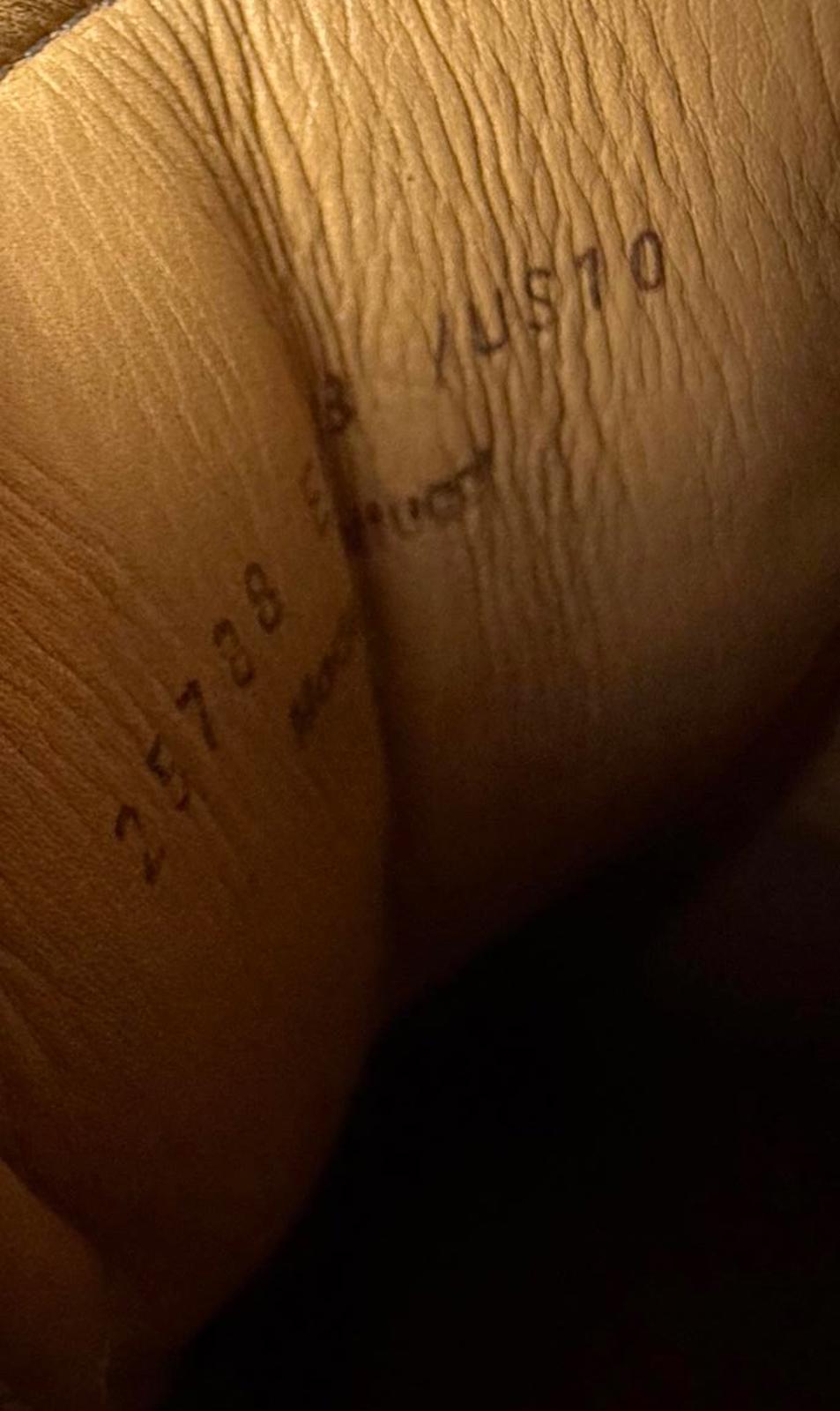 Rubber sole with light wear visible on the bottom and a couple scuffs on exterior but in great condition overall.