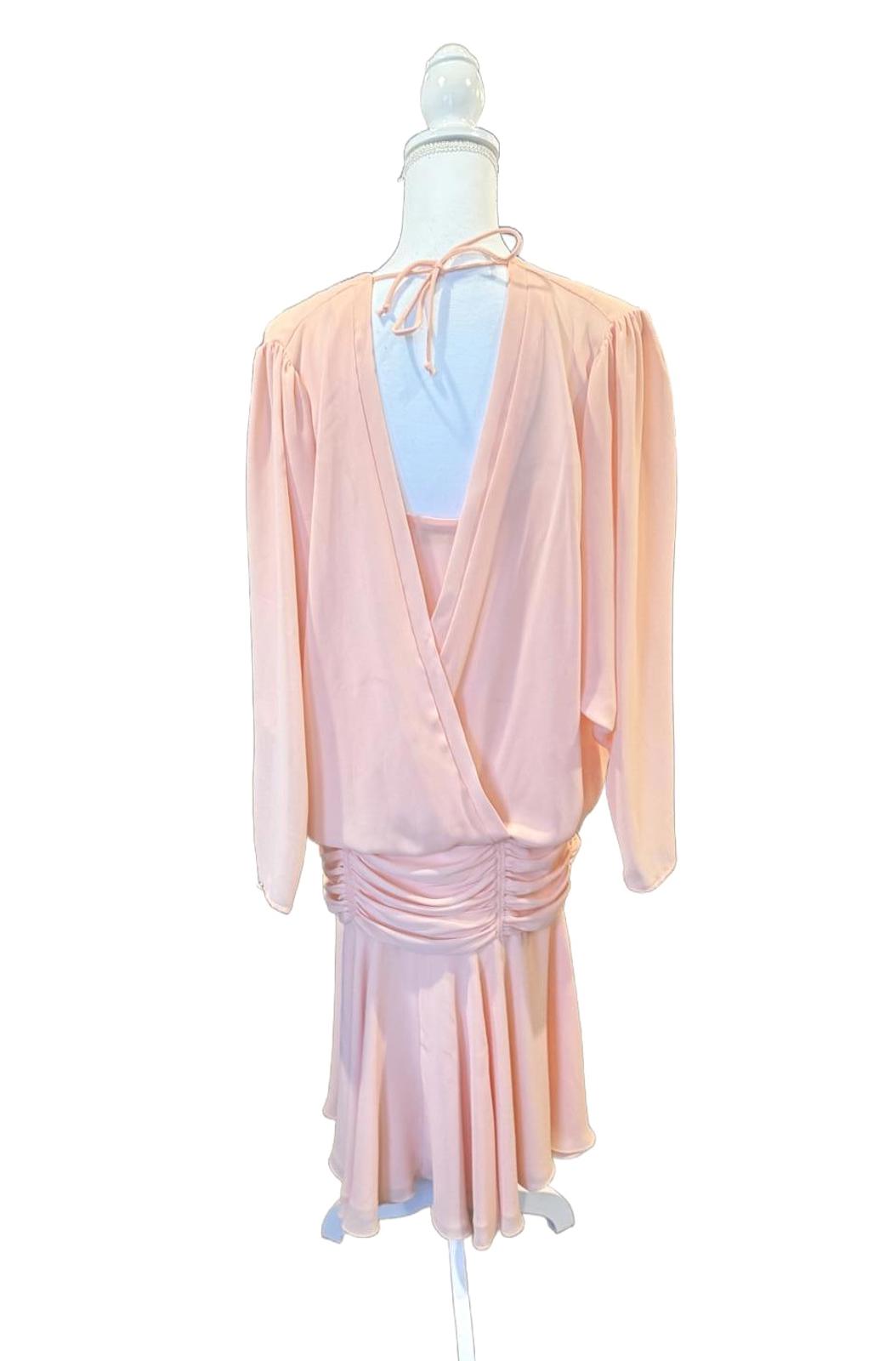 Martinique Peach Vintage Long Sleeve Midi Ruched Dress, Medium