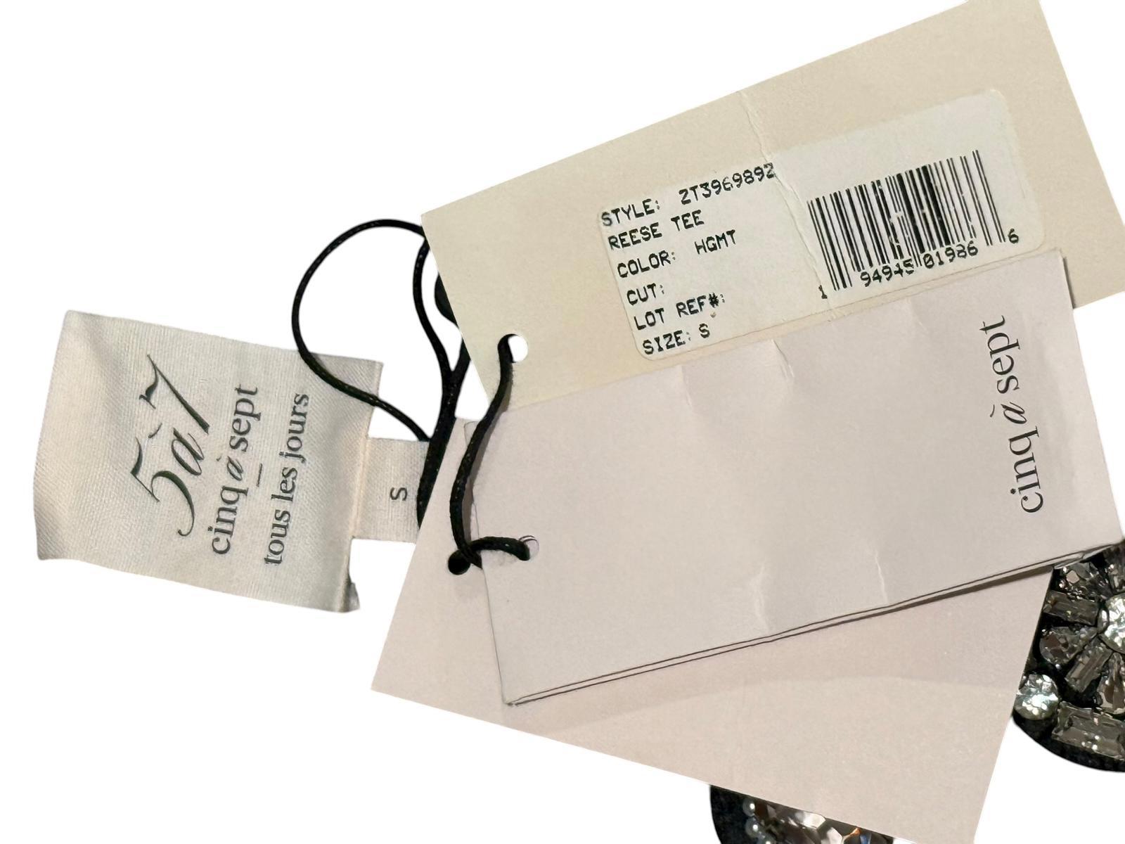 Decorative pins embellish the front neckline area, adding a unique touch.
