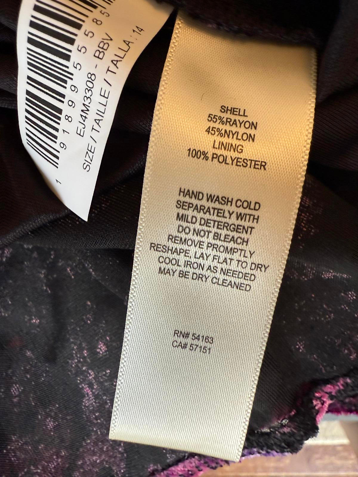 New Eliza J Mesh Long Sleeve Floral Velvet Dress, Size 14