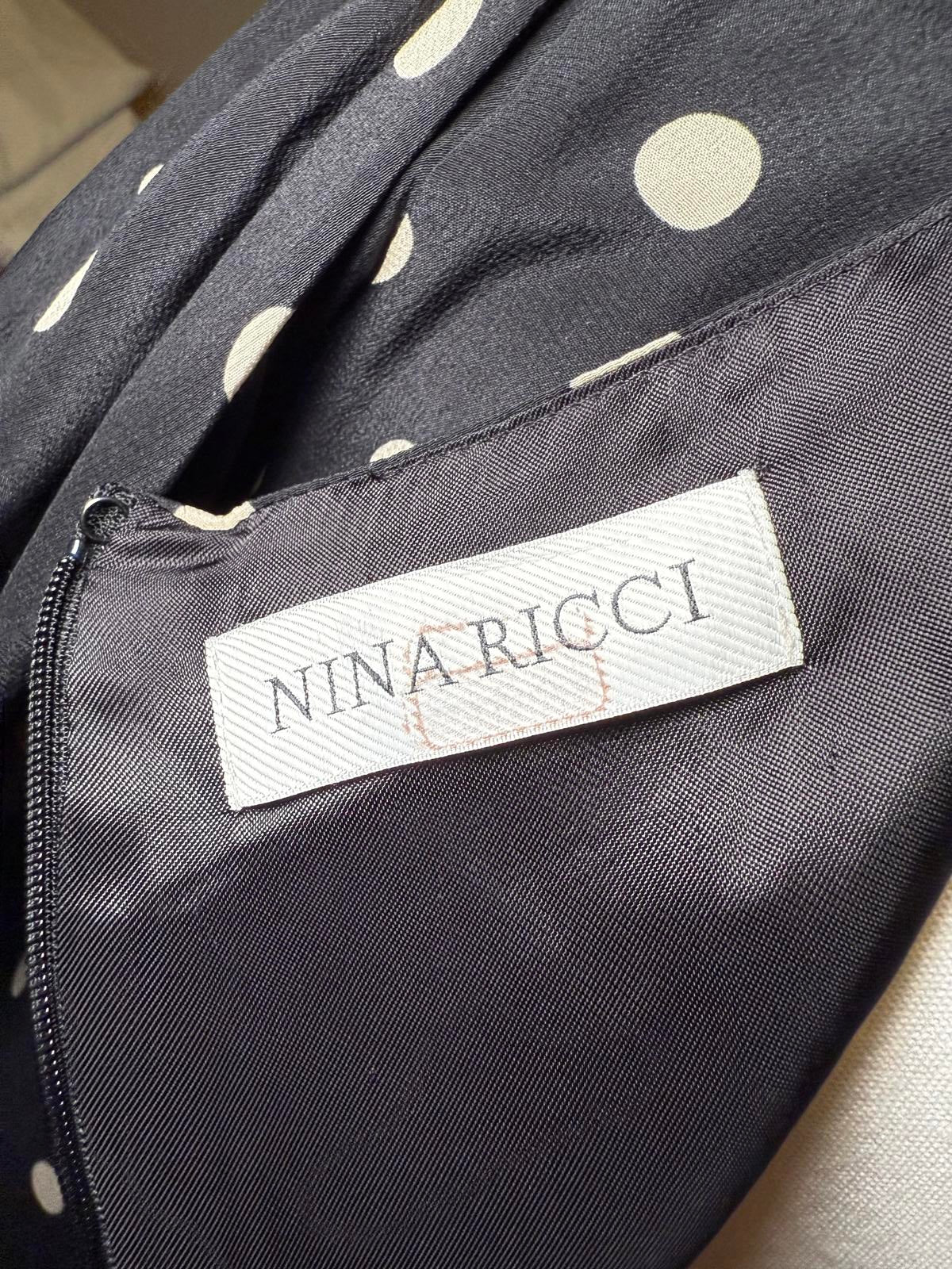New Nina Ricci Black and White Polka Dot Long Sleeve Silk Dress, FR 36