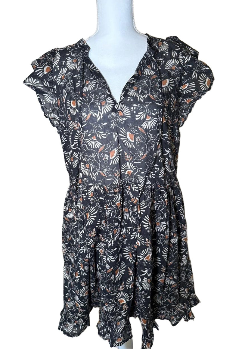 Rails Mini Dress Womens Size Large Black Floral Ruffle Tiered Ruffle Sleeves Boho Chic Flowy