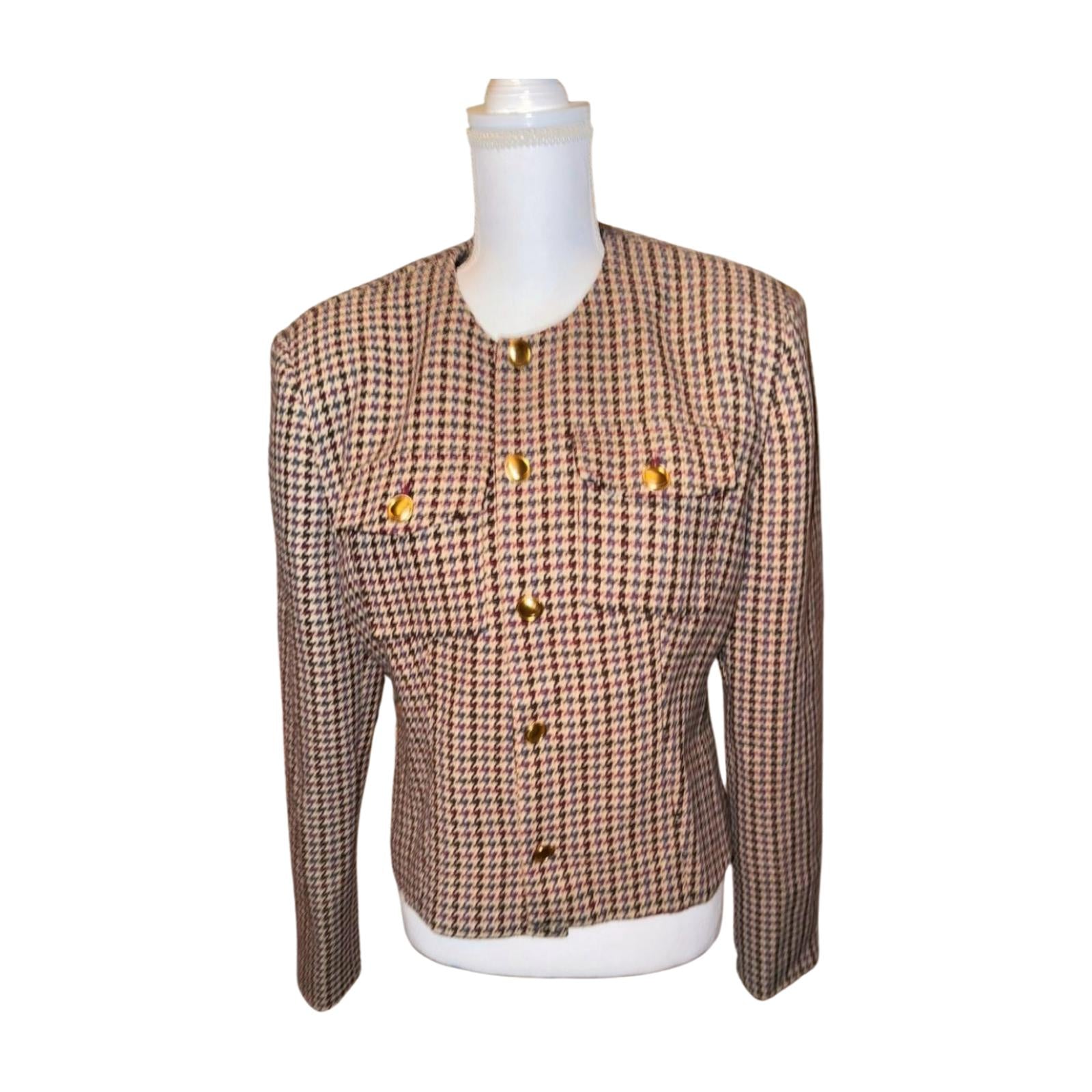 New Ronny Kobo Houndstooth Pattern Blazer Jacket with Gold Buttons
