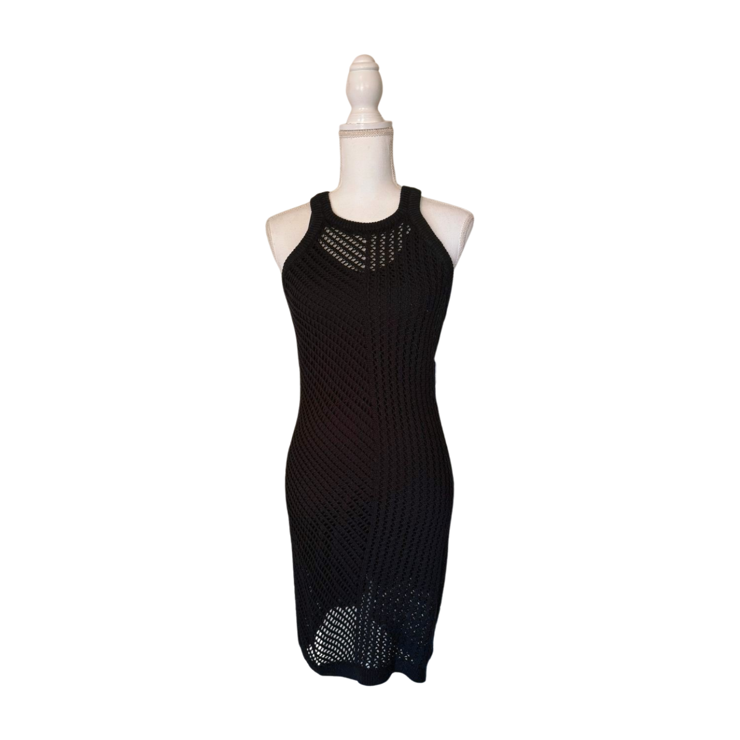 New Spiritual Gangster Black Crochet Knit Sleeveless Midi Dress, Size Medium