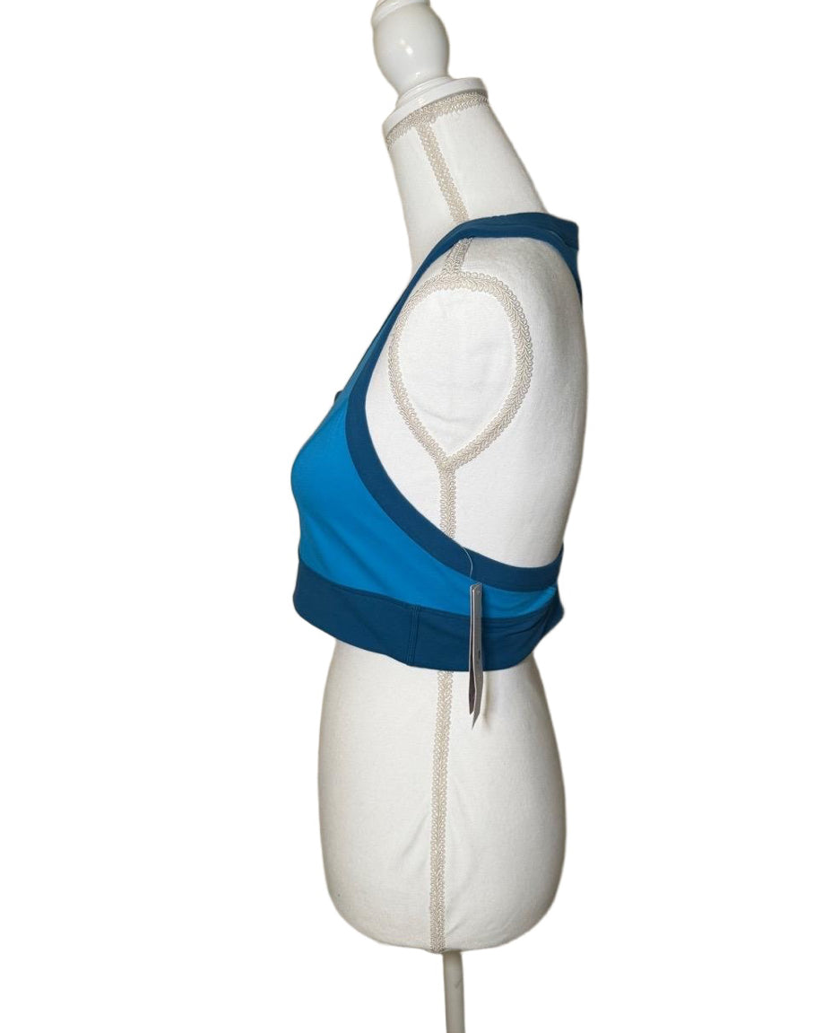 New Spiritual Gangster Sports Bra, Size L – Two-Tone Teal Aurora Racerback w/ Gold Hamsa Logo