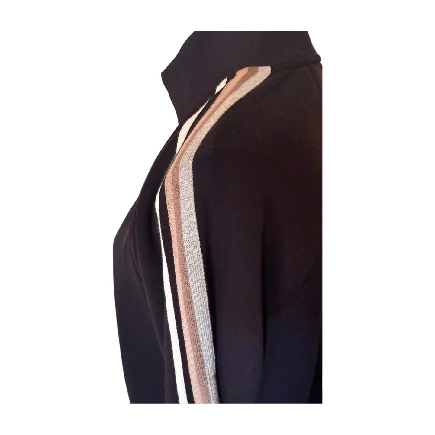 New Spiritual Gangster Women's Pullover Sweater with Striped Sleeves and Half-Zip Collar, size Medium