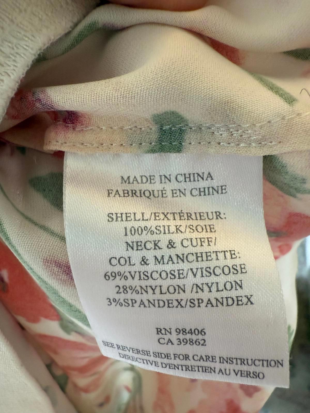 New Theory Floral Print Long Sleeve Blouse, Size Petite Small