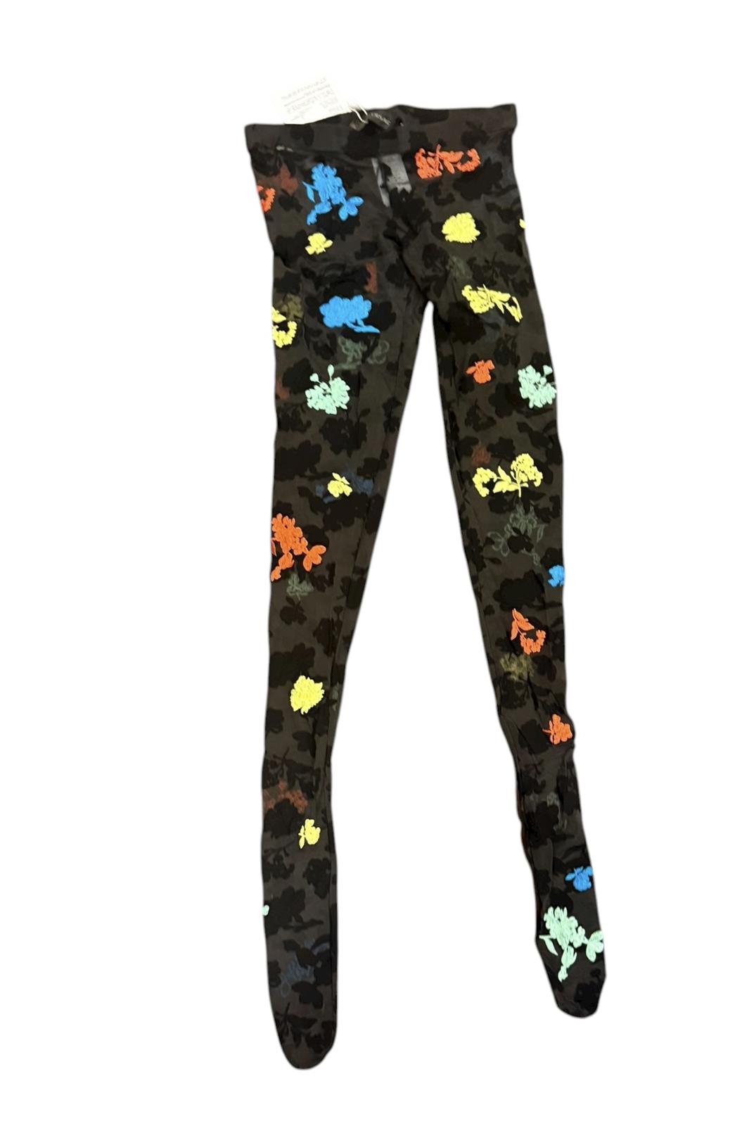 New Versace Flowers Black Stampa Ricamato Pantyhose