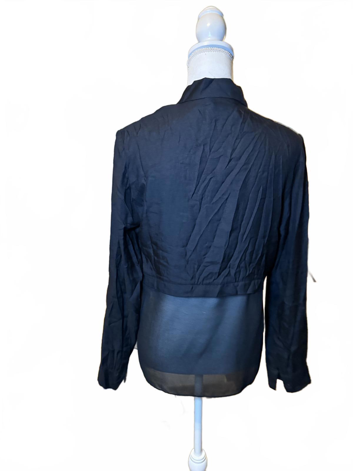 Sandro Black Sheer Long Sleeve Women's Blouse with Embroidered Detail, Large