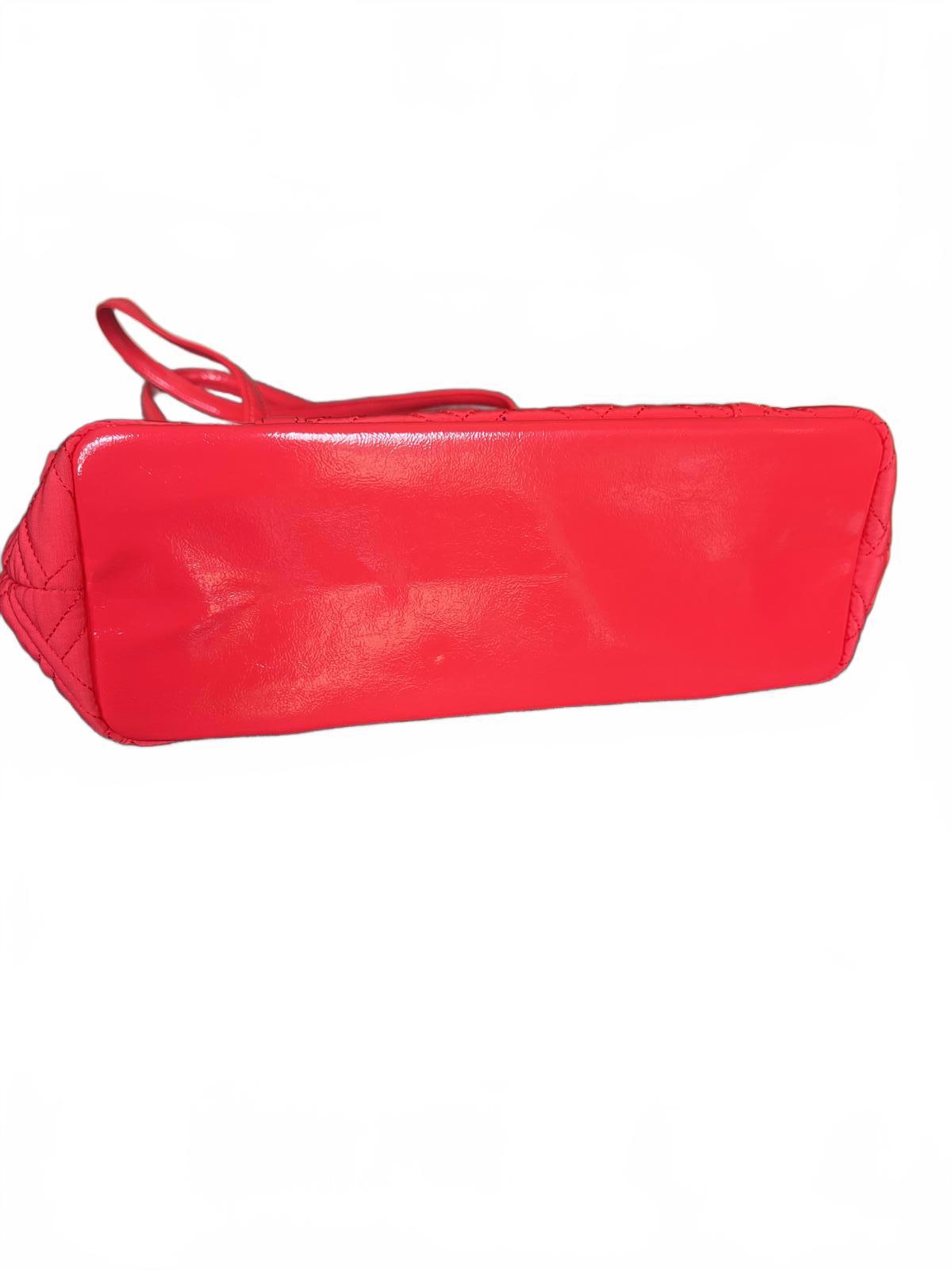 Vera Bradley Red Quilted Tote Handbag with Patent Leather Straps
