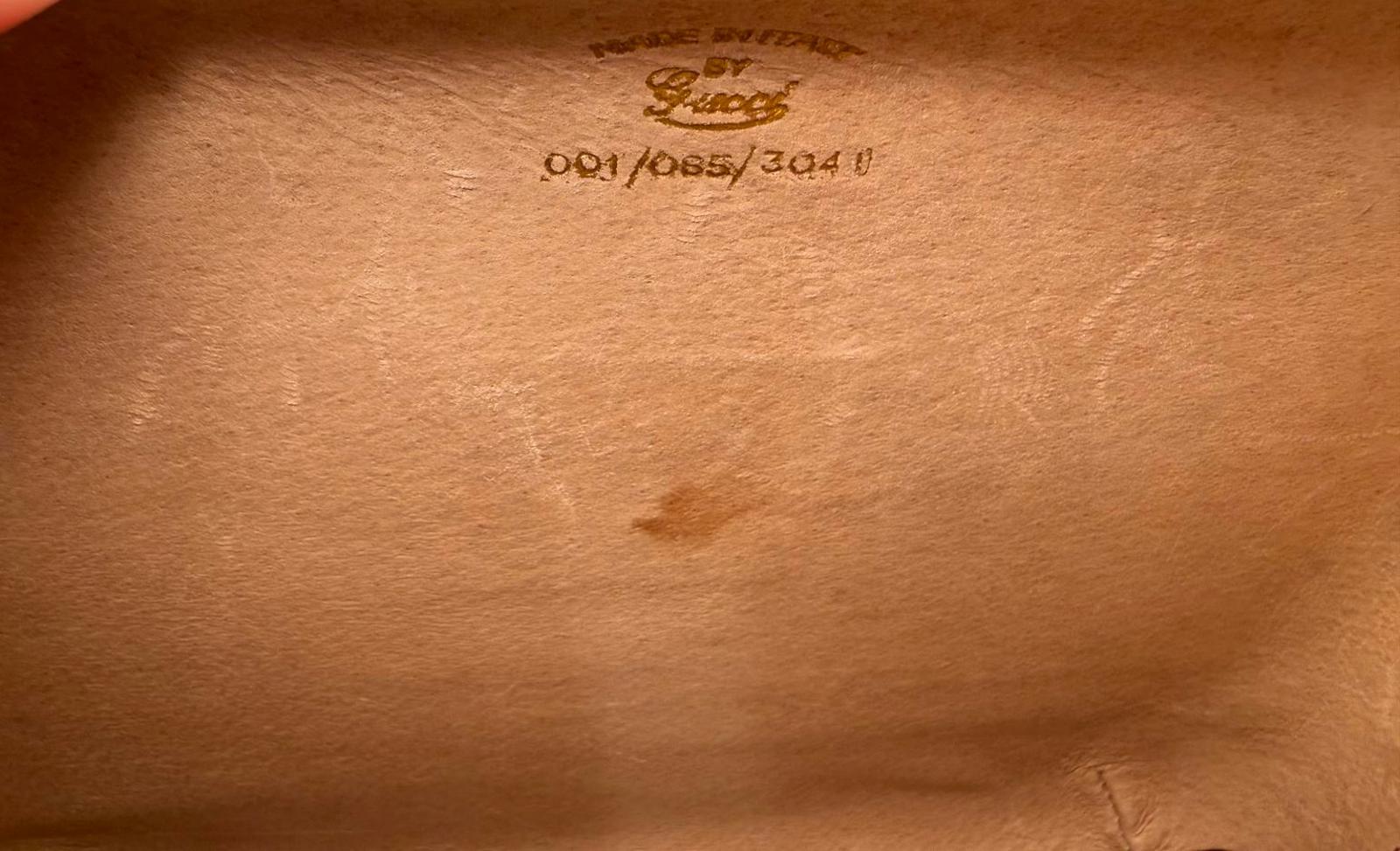 Gold-tone horesbit hardware accents on the sides add a touch of elegance. Slight separation on one side with horsebit hardware not loose at all just very minor space.