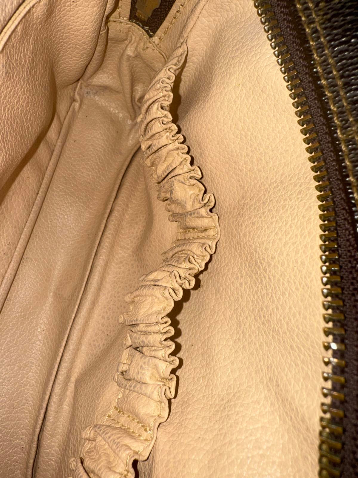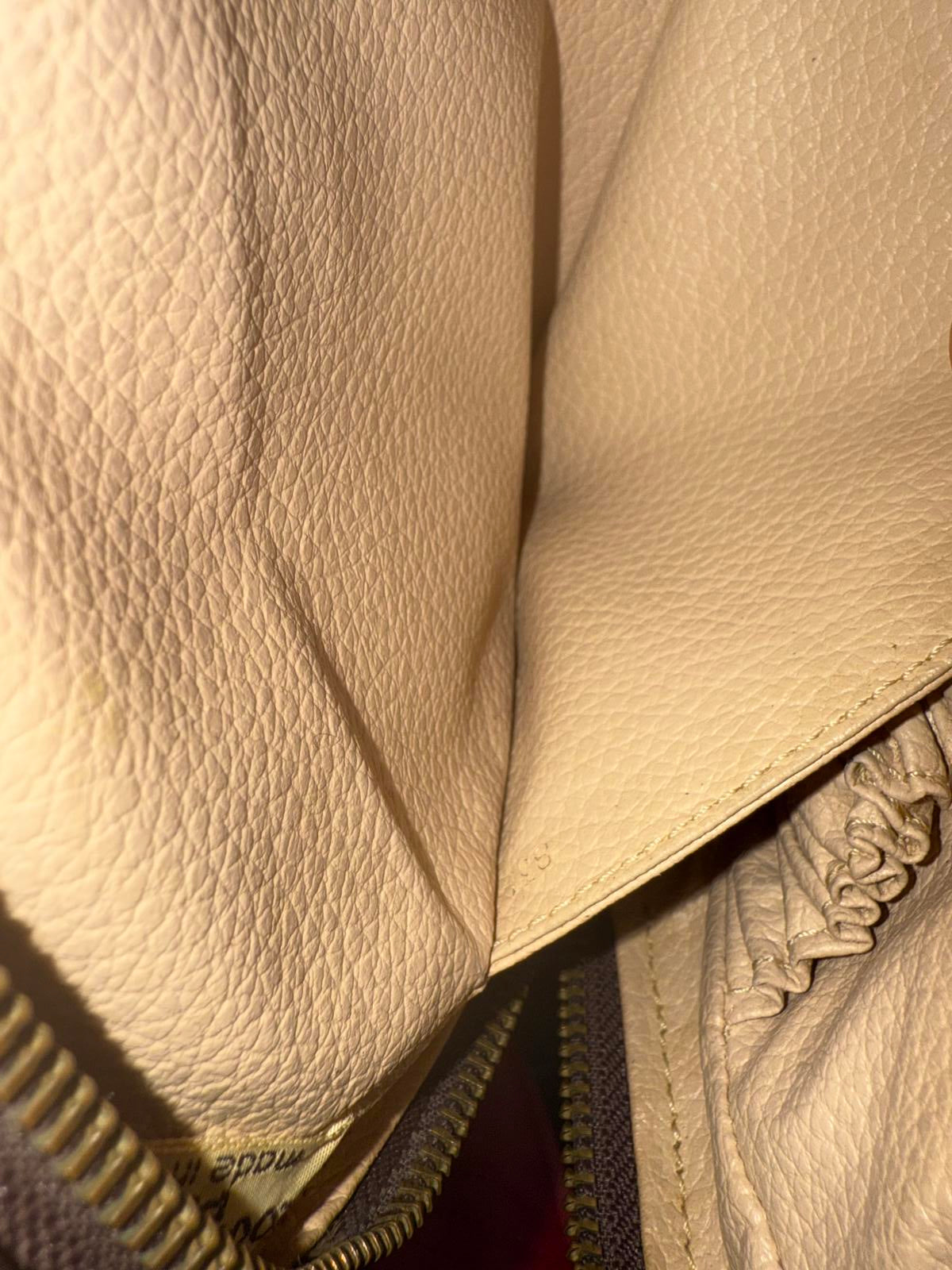 Small crack in canvas, minor wear to corners, and some wear to interior all as pictured. A ton of life left and great condition for the vintage.