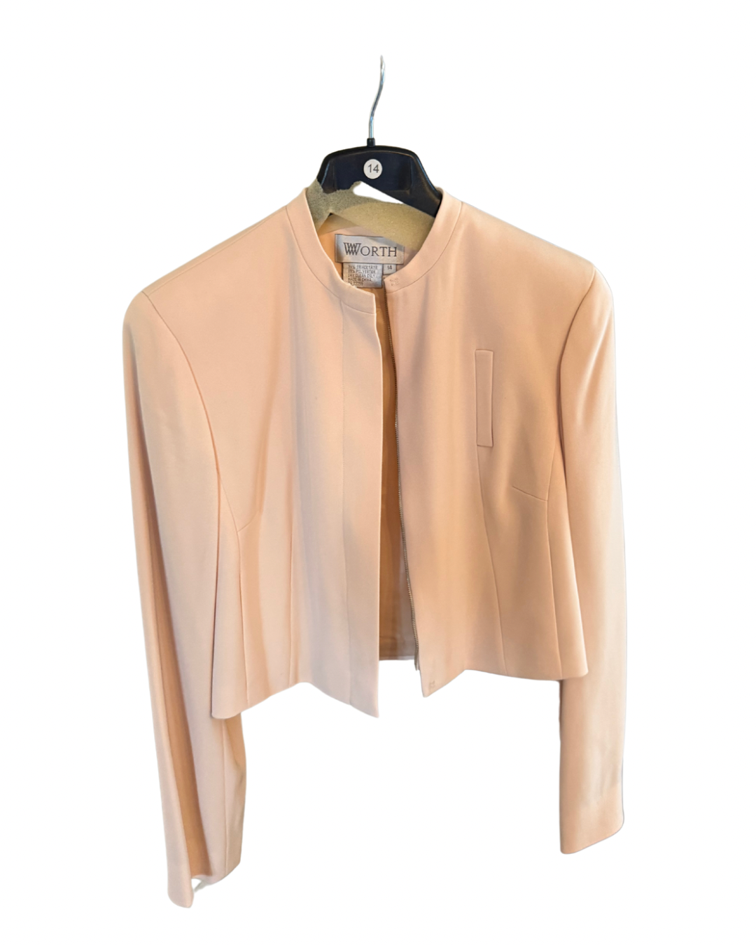 This Worth blush bolero jacket (Size 14, NWT) delivers flawless tailoring, a dreamy soft‑pink hue, and that fresh‑from‑the‑boutique feel. Dress it up for spring weddings, layer over a cami and trousers for the office, or throw it on with denim for polished weekend vibes.